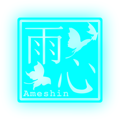 The name Ameshin (雨心) was created from two words, combined to create the unique name in Japanese. Ame (雨) meaning Rain & Shin (心) Meaning Heart or Spirit.